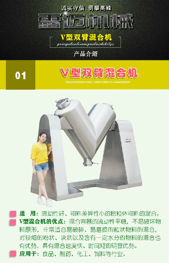 用于制藥、化工、電子、食品、飼料等行業對粉狀、顆粒狀等物料的均勻混合。